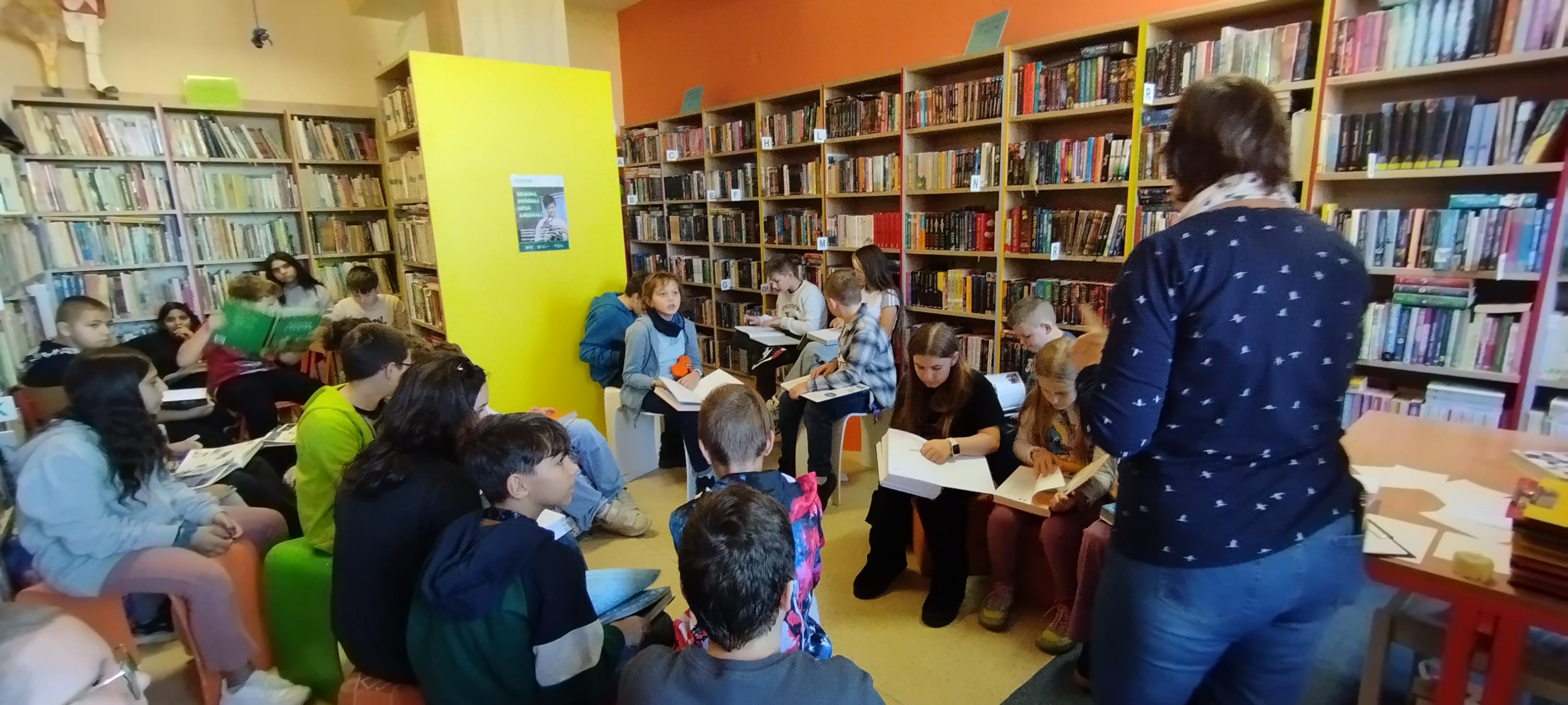 Dnes sme spolu so žiakmi šiesteho ročníka navštívili Zemplínsku knižnicu. Počasie nám prialo – slnečný jesenný deň bol ako stvorený na prechádzku, ktorú nám spríjemňovalo šuchotanie farebných listov pod nohami.